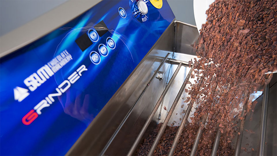 Trzeci element linii Bean to bar - młyn do mielenia wstępnie rozdrobnionych ziaren kakaowca (z maszyny Selmi Winnower) na cząstki o wielkości od 100 do 300 mikronów. Produkt, po włożeniu do zasobnika, jest kruszony przez stalowe kołki, aby uzyskać "wstępnie rafinowaną" pastę.