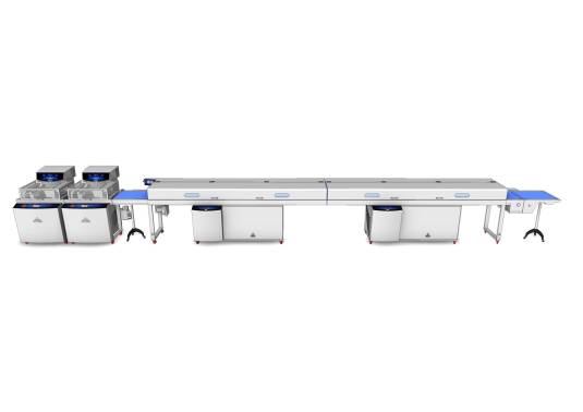 System uzupełnia specjalny zestaw akcesoriów, obejmujący tacę zbiorczą na czekoladę oraz regulator wysokości siatki zamontowany na taśmie.