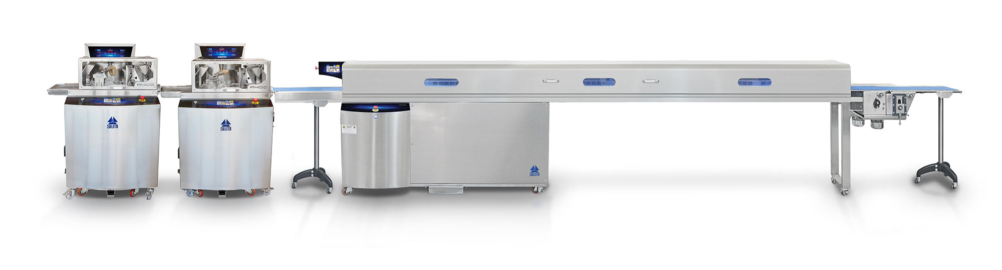 Konfiguracja przeznaczona do oblewania mrożonych owoców opiera się na dwóch taśmach oblewających – R400T Plus lub R600T – współpracujących z dwiema temperówkami w wersjach Top EX lub Cento EX.
