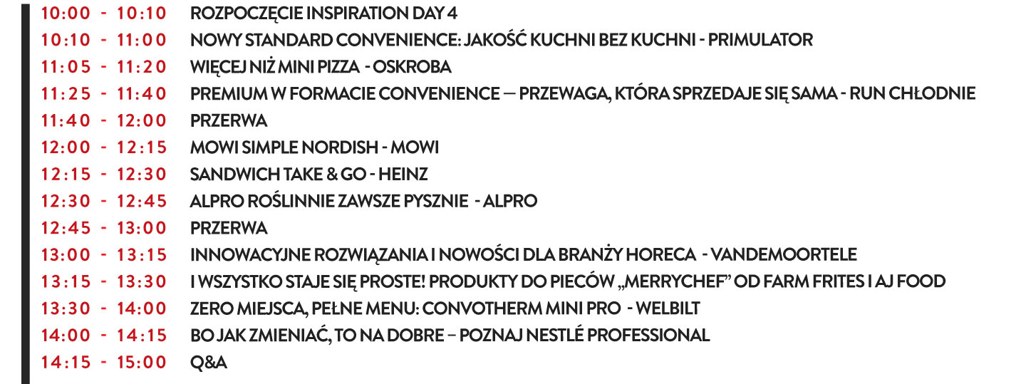 Co roku zapraszamy starannie wyselekcjonowanych partnerów HoReCa. Ich technolodzy kulinarni i eksperci produktowi zaprezentują w praktyce nowatorskie i elastyczne podejście do budowania oferty hot food oraz rozwiązywania codziennych wyzwań operacyjnych w gastronomii.